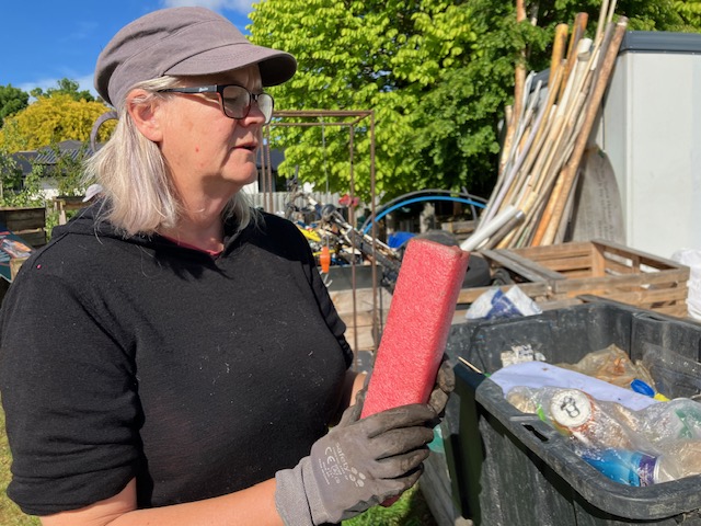 “I don’t weigh the big things like bikes and cones anymore, as I use an average weight for them when I transfer the data to the spreadsheet,” says Hayley. “I count the bikes and, unless I can get them refurbished, they go into the metal bin. When the bin’s full I take it to a metal recycler and get money for it.”.