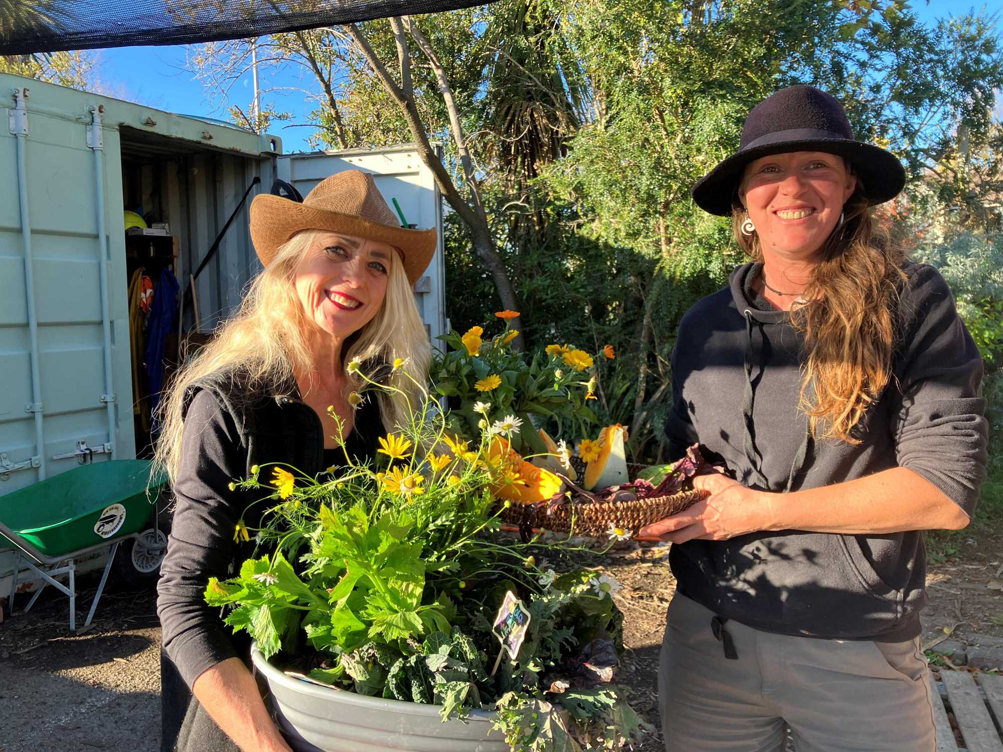 Photo 3: Kryska Wiek (L) and Roz Rolls (R) with produce from the urban farm.